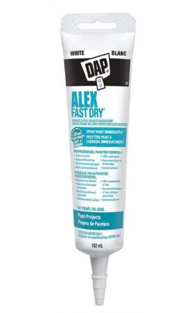 ALEX FAST DRY Acrylic Latex Caulk Plus Silicone Fast drying and specifically formulated to meet the demanding needs of Professional Painters, delivering outstanding paint finish results. FEATURES AND BENEFITS Paint ready in 20 minutes. Won't shine through or discolor paint. Resists cracking & chalking. Exceeds ASTM C834. 50 year warranty. Cured caulk is mold & mildew resistant. Easy water clean-up. Low odor. Interior/exterior use. 100% waterproof seal. Back to DAP