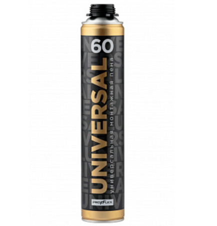 Universal 60 Professional Polyurethane Foam Professional moisture-curing polyurethane foam that insulates, seals, sound-deadens and bonds various building materials together. FEATURES AND BENEFITS Cures in between -18°С and +35°С (Optimal result is achieved at a temperature of -12°С and up). Requires mandatory moistening in conditions of low humidity. Bonds to cement, glass, wood, brick, gypsum, PVC (except fluoroplastic, polypropylene and polyethylene). Low moisture absorption. Foam dries to the touch in 15 min (at +15°С and moisture 60%) Can be cut in 80 min (at +15°С and moisture 60%). Foam output: not less than 60 liters. Contains a flame retardant. Back to Soudal